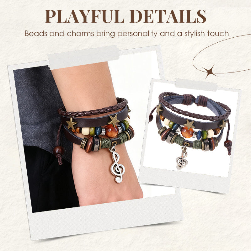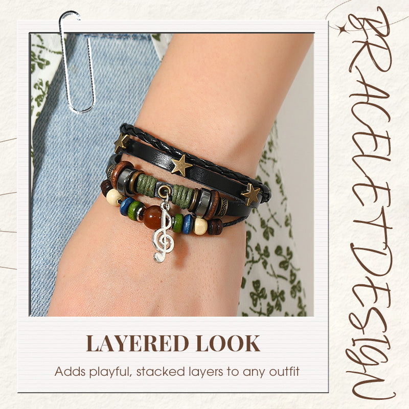 FUN DETAILS – PLAYFUL LITTLE TOUCHES: Wooden beads, tiny stars, and music note charms give it a light, artsy vibe. Woven leather adds a vintage feel and character. These little touches keep it fun and give the wrist a subtle pop.