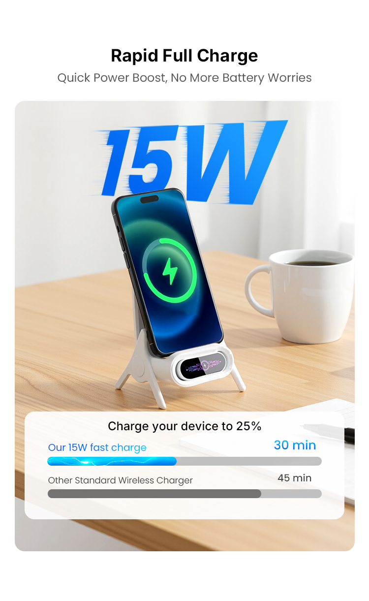 📱 NU 50% KORTING! ✨ Draadloze snellader met telefoonstandaard - 15 W snelladen en verstelbare kijkhoeken, compatibel met alle Qi-apparaten ⚡📦