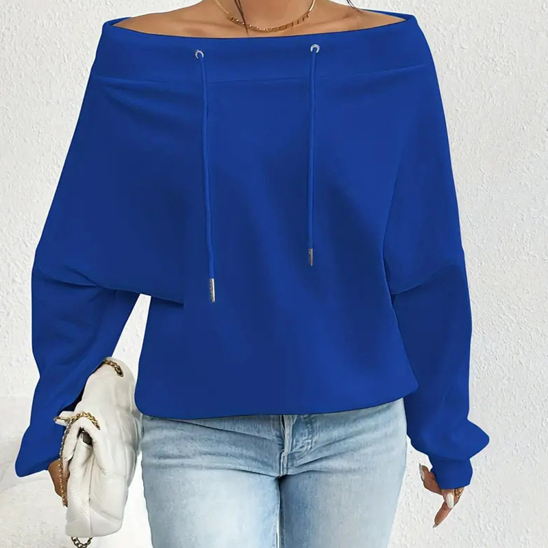 CHIQUE OFF-SHOULDER ONTWERP: Omarm moeiteloze elegantie met de off-shoulder halslijn, die een vleugje speelse verfijning toevoegt aan je casual look. Perfect om je elke dag stijlvol en zelfverzekerd te voelen.