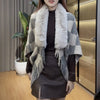 STIJLVOL GEBREID ONTWERP - Dit grote vierkante geruite gebreide vest is ontworpen om gezellig en chic te zijn met een tijdloze stijl. Het klassieke geruite patroon wordt aangevuld met een kraag van imitatiebont en getextureerde franjes voor extra elegantie.