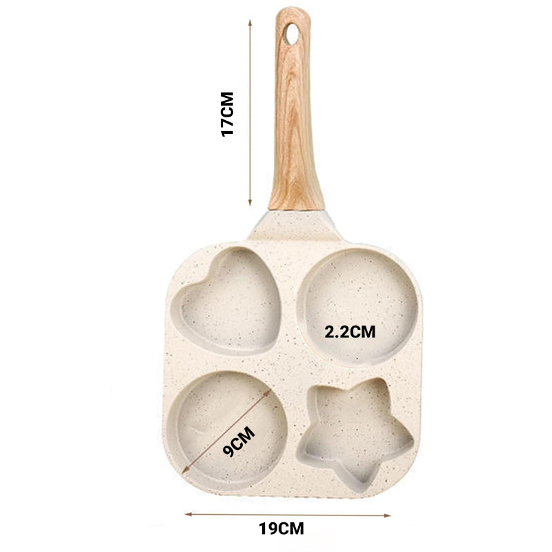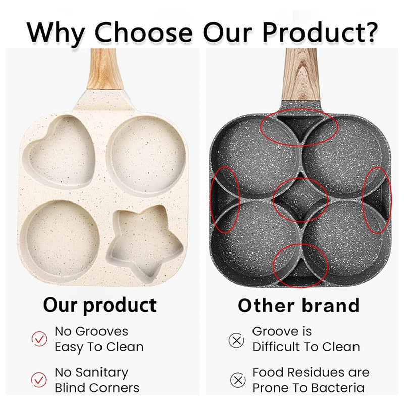 4-IN-1 KOOKONTWERP: Deze multifunctionele pan heeft vier aparte secties om meerdere eieren, pannenkoeken of mini-omeletten tegelijk te bakken, zodat je gemakkelijk en snel van je ontbijt kunt genieten.