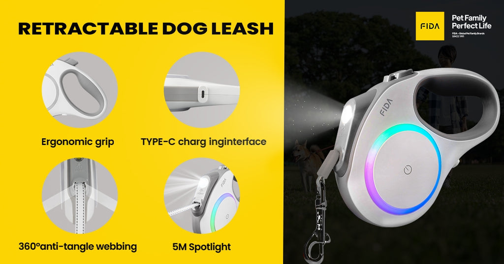 Ons doel is om een veilige en meer modieuze oprolbare hondenriem te bieden met heldere LED-verlichting om u beter de weg te wijzen in omgevingen met weinig licht.