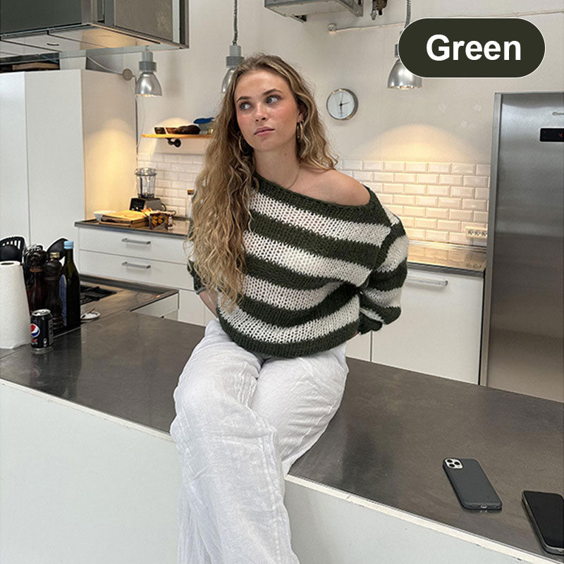 💥Uitverkoop 49% korting💕Losse Comfortabele Gestreepte Brei Trui voor Vrouwen