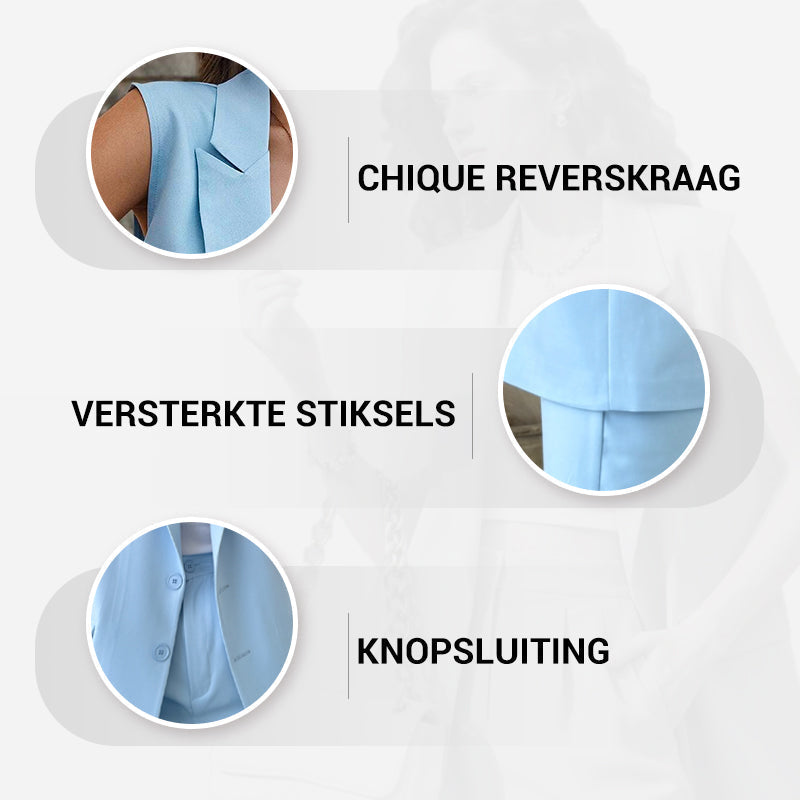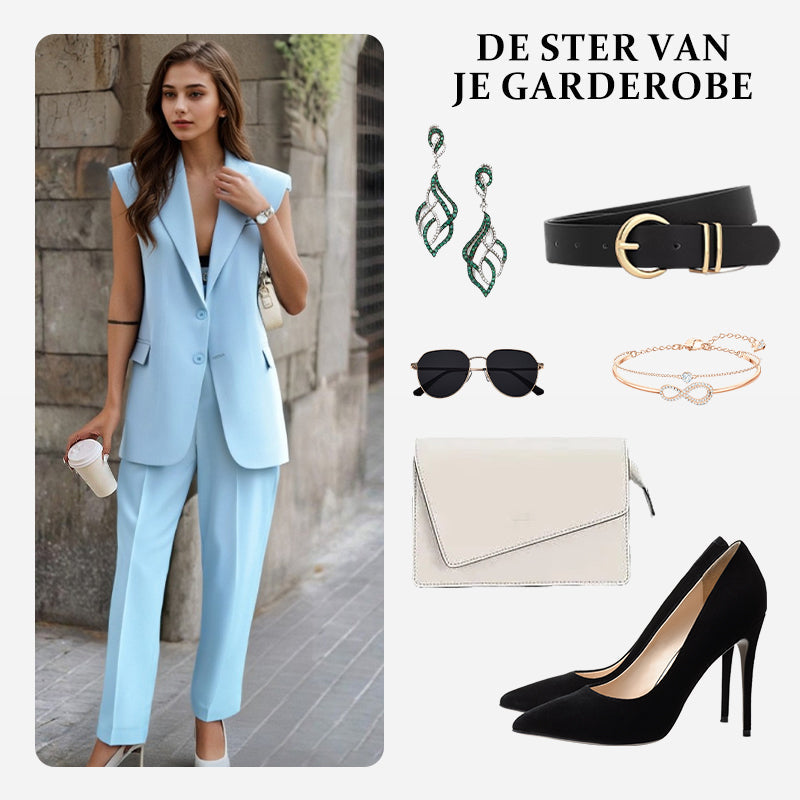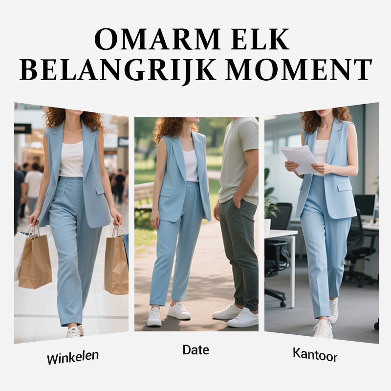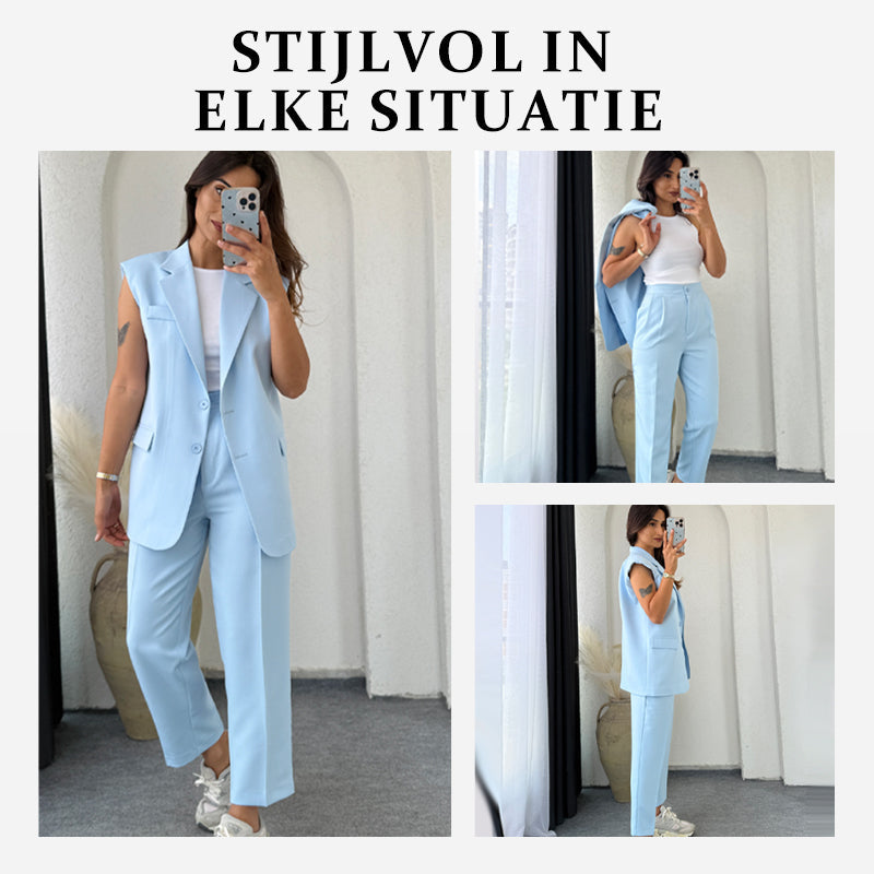 🌞Dames Stylish Mouwloze Blazer & Hoog Getailleerde Broek Set